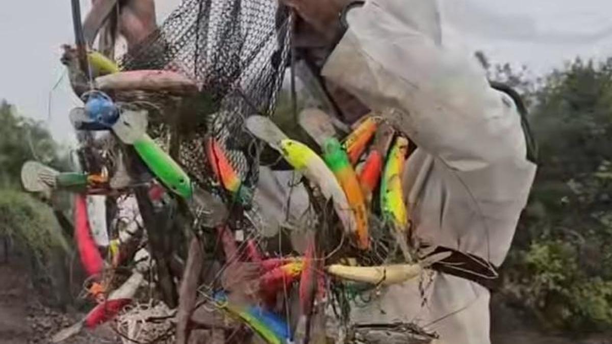 Unos amigos van a pescar y sacan del río un árbol lleno de señuelos valorados en más de 700 euros: la historia que se ha vuelto viral en redes