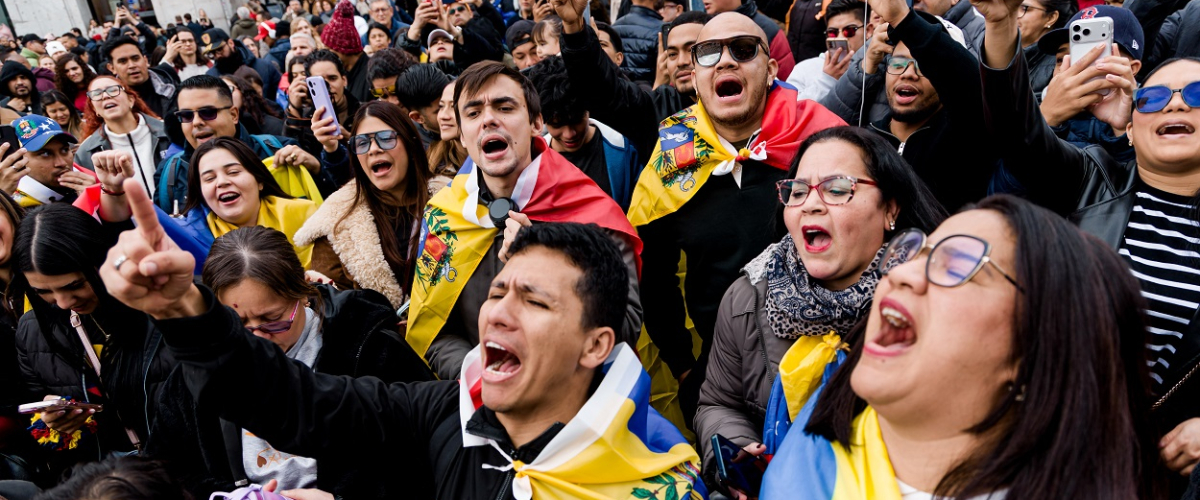 Decenas de venezolanos celebran en la Puerta del Sol de Madrid la captura de Nicolás Maduro