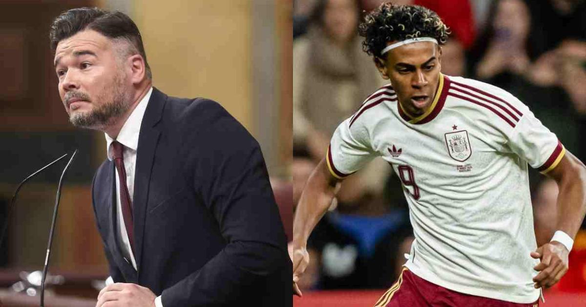 Rufián retrata con dos apuntes a la afición de la Selección que pronunció los cánticos racistas