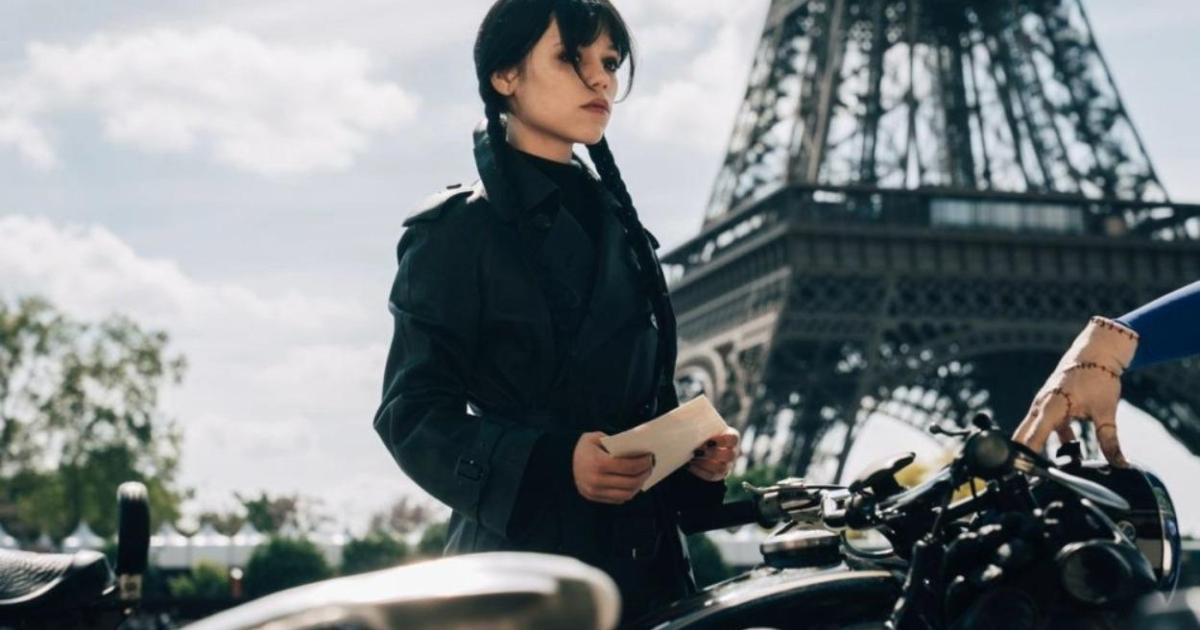Netflix revela la primera imagen de la tercera temporada de ‘Miércoles’, con Jenna Ortega en París junto a Cosa bajo la Torre Eiffel...