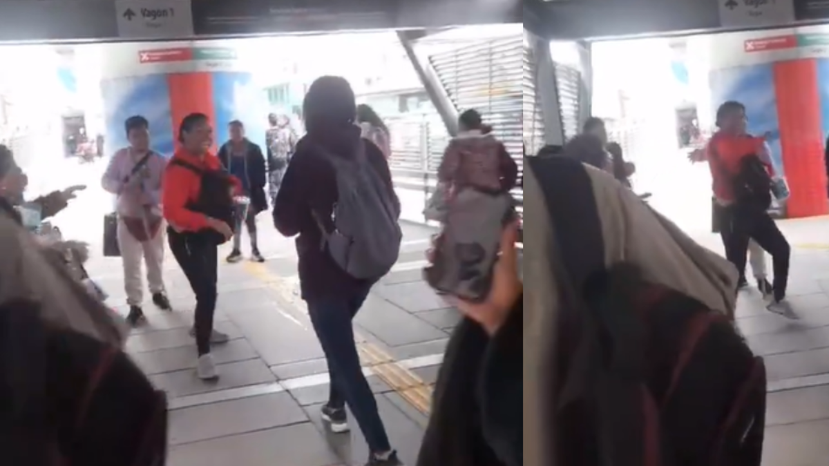 En video quedó registrada la pelea de dos mujeres que se enfrentaron con tambo en estación de TransMilenio