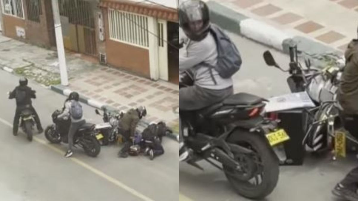 Nuevo robo violento en Bogotá quedó en video: seis hombres armados interceptaron a motociclista en la entrada de su casa y se llevaron un maletín