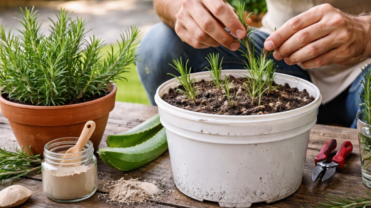 Un procedimiento paso a paso para multiplicar romero utilizando ramas, sustratos ligeros y condiciones controladas de humedad....