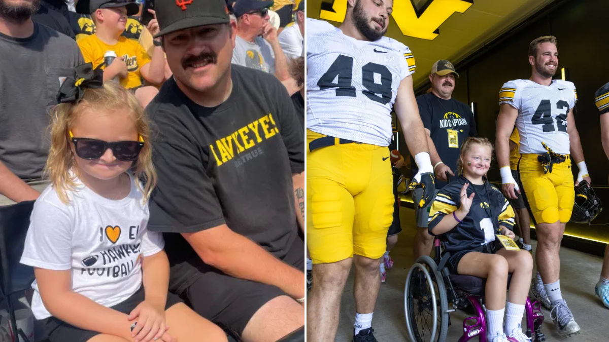 Harper Atkinson, nacida en Iowa, tiene una enfermedad ósea no identificada, ha tenido varias cirugías y es capitana infantil de los Hawkeyes en 2025....