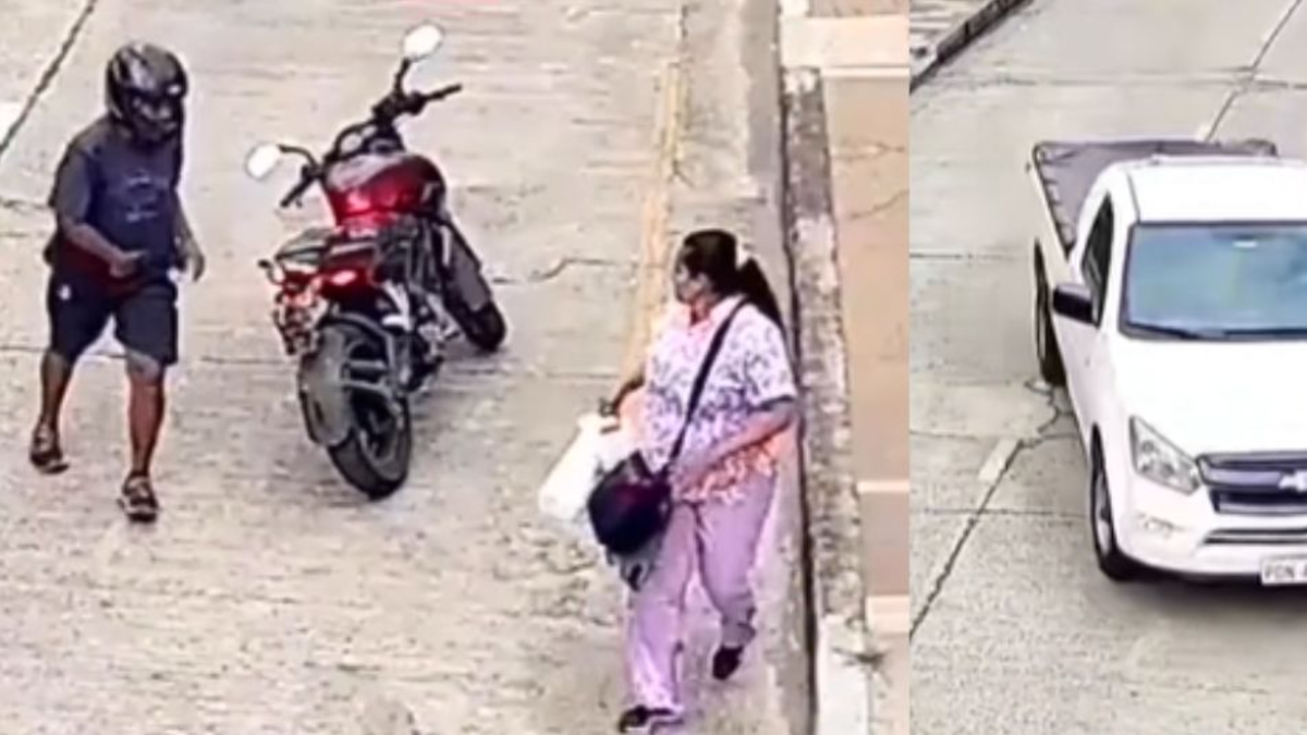 Video registró momento en que ladrón intentó robar a una mujer y fue embestido por una camioneta que pasaba por el lugar: 'Gente que le pone el alma'