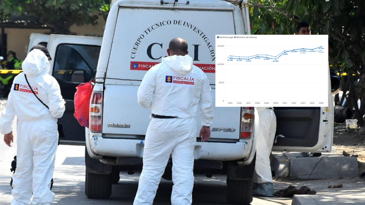 En 2025, Medicina Legal reportó 14.780 homicidios en el país, 1.054 casos más que los registrados por el Ministerio de Defensa