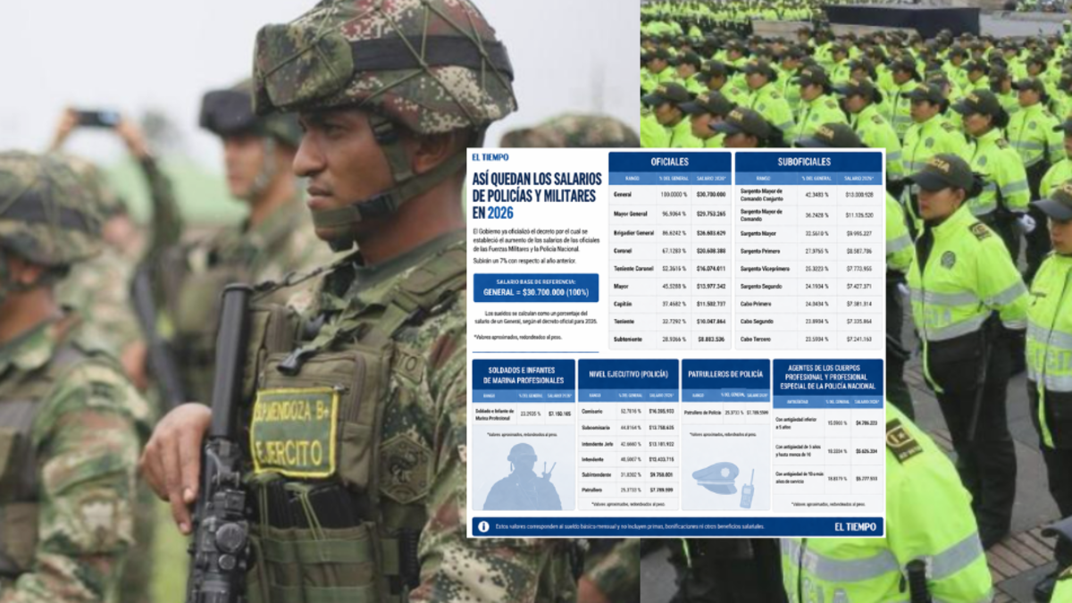 Nuevo salario de policías y militares para el 2026: estos son los sueldos por rango