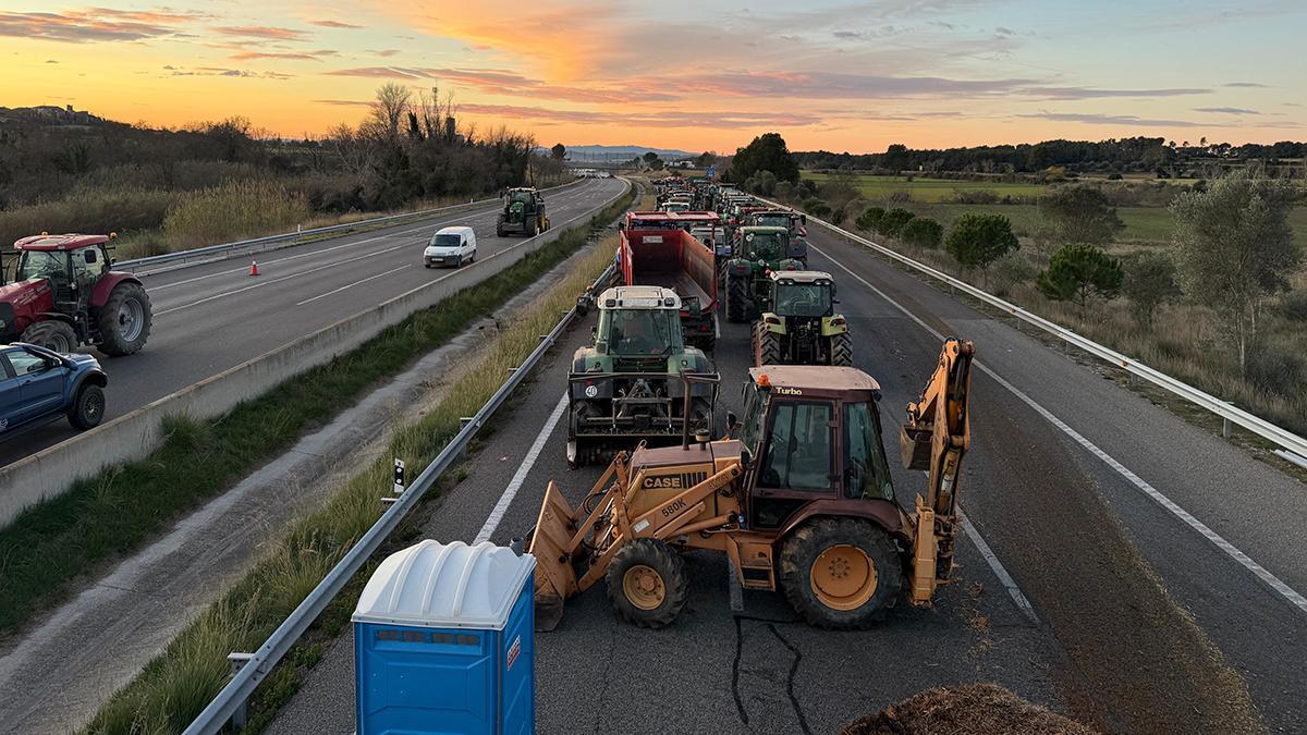 Cientos de profesionales del campo han cortado la AP-7 en Girona, la A-2 en Lleida y bloqueado el Port de Tarragona, una protesta que pretenden mantener mínimo hasta domingo...
