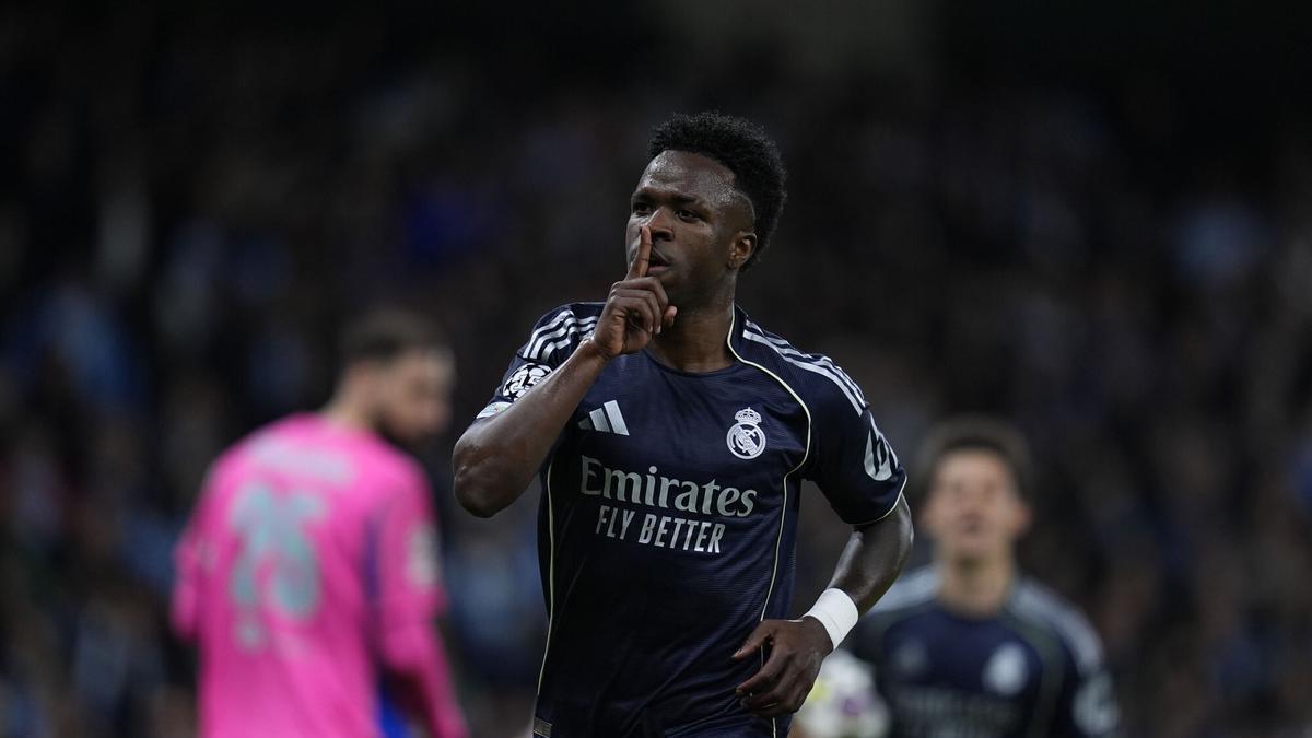 Un doblete de Vinicius otorga la victoria al Real Madrid en el Etihad y se citará con el Bayern Múnich en cuartos