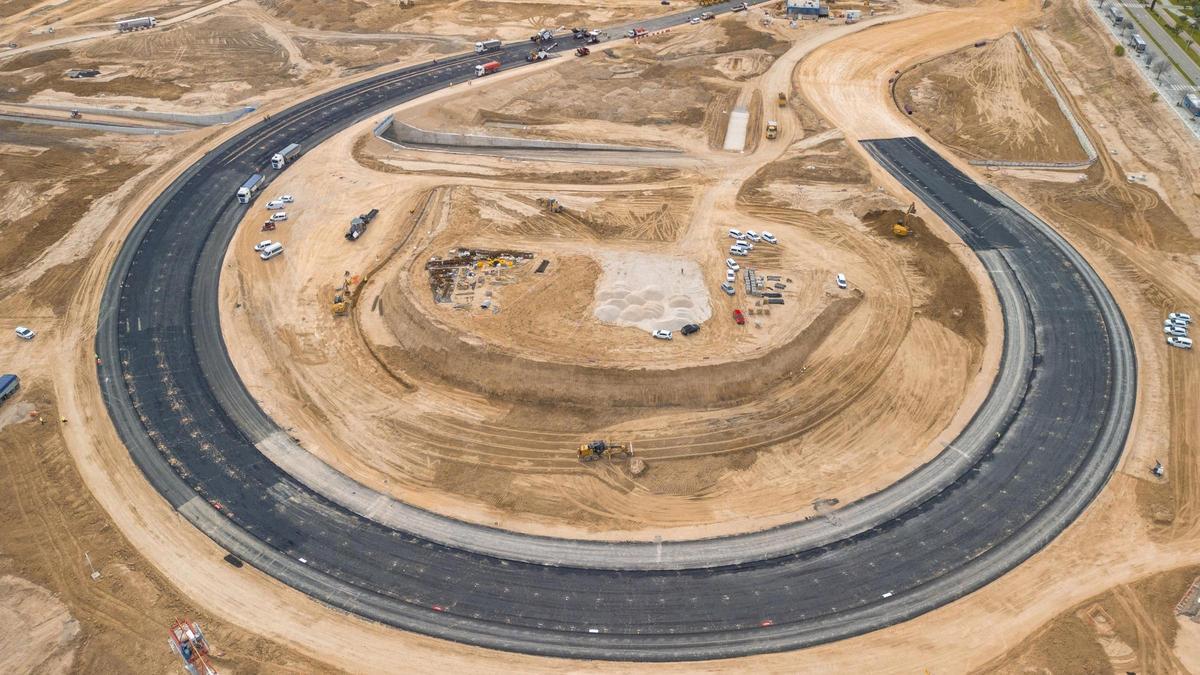 La curva peraltada del futuro circuito de Madrid ya muestra su forma definitiva tras completar una fase clave de su asfaltado...