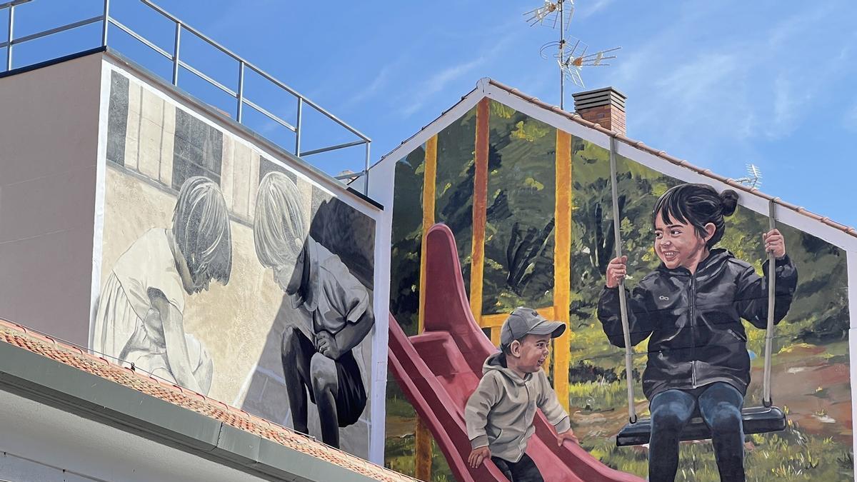 Así es 'Niños Futuro', el nuevo mural urbano de Fuenlabrada que rinde homenaje a las antiguas escuelas
