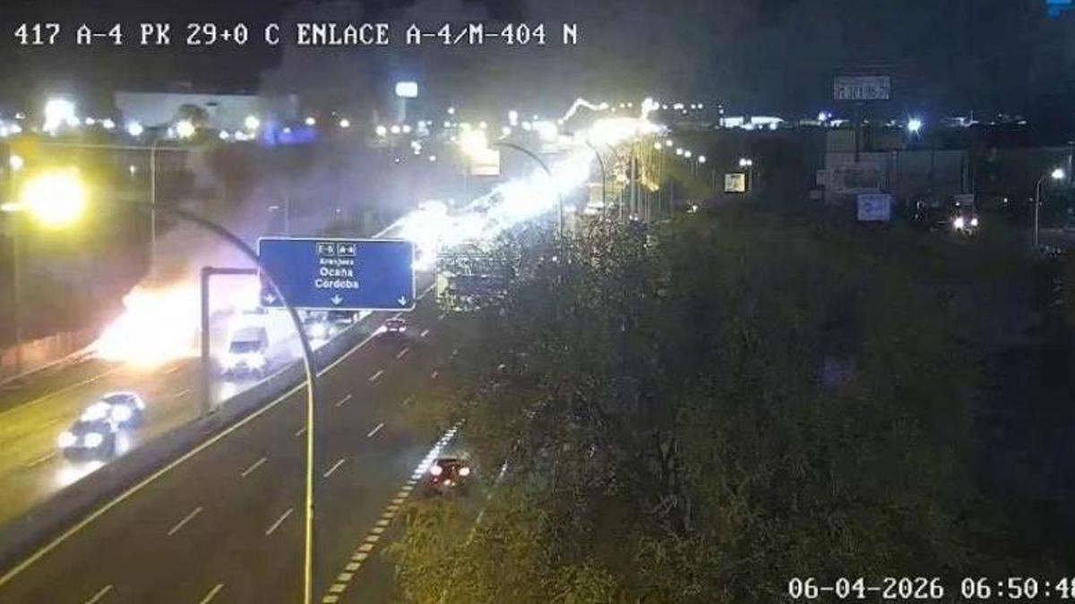 Retenciones de hasta 3 kilómetros por el incendio de un vehículo en la A-4, en el entorno de Valdemoro
