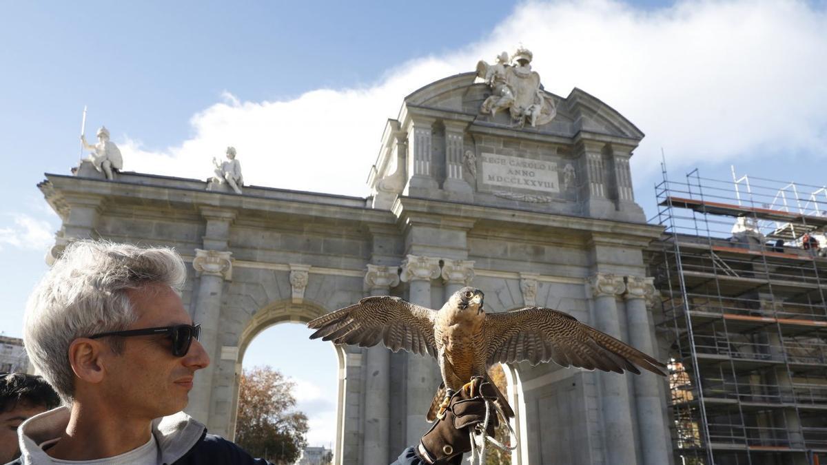 Dos águilas y un halcón contra las palomas: el plan para conservar la Puerta de Alcalá