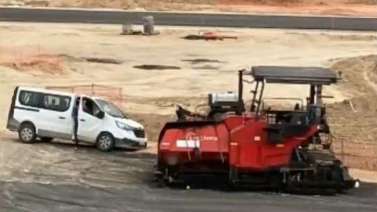 El incidente, capturado en vídeo, muestra cómo el conductor de la furgoneta, que formaba parte de la construcción, se salió de la curva, afortunadamente sin consecuencias graves...
