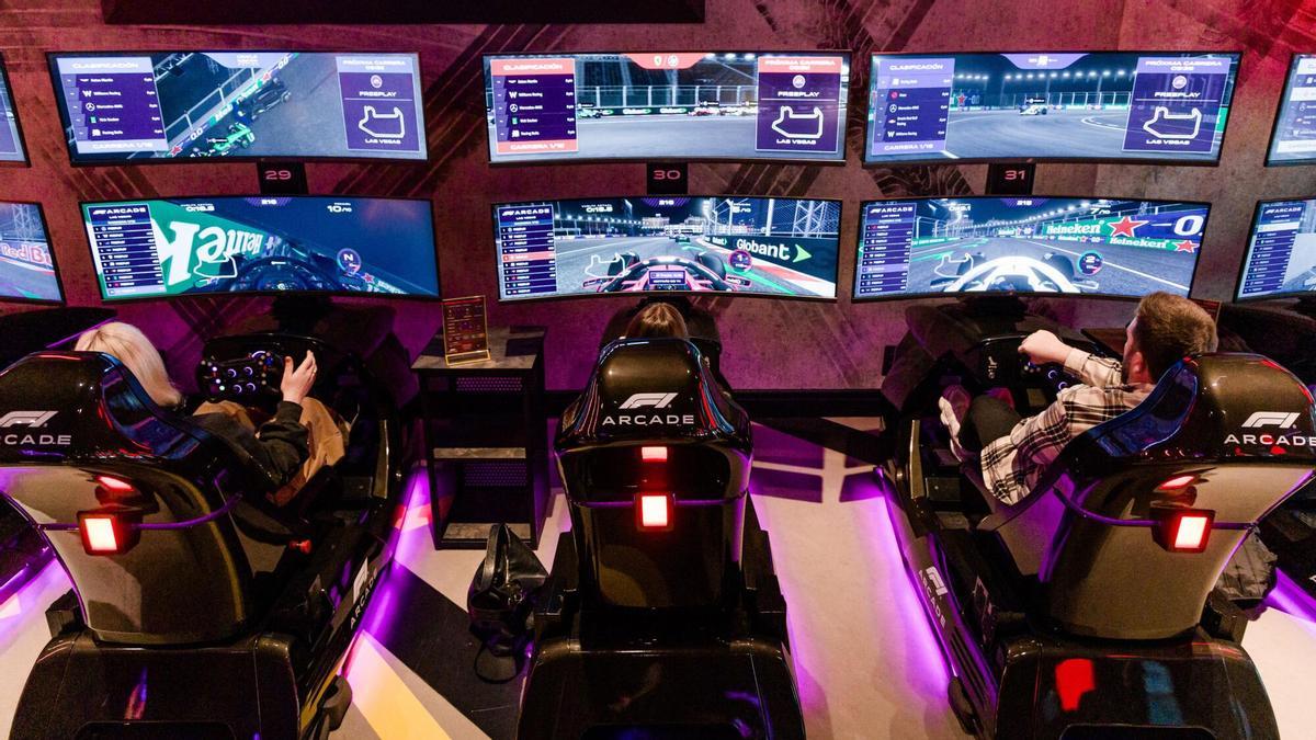 Sentirte un piloto sin parar de comer y beber: F1 Arcade trae a Madrid una versión glamourosa de los recreativos... y eso se paga