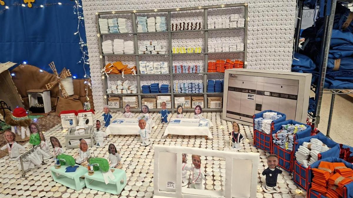 La creación triunfadora está realizada con bobinas de hilo, botones, dedales, tela y goma e incluye a los propios profesionales del centro junto a los Reyes Magos...