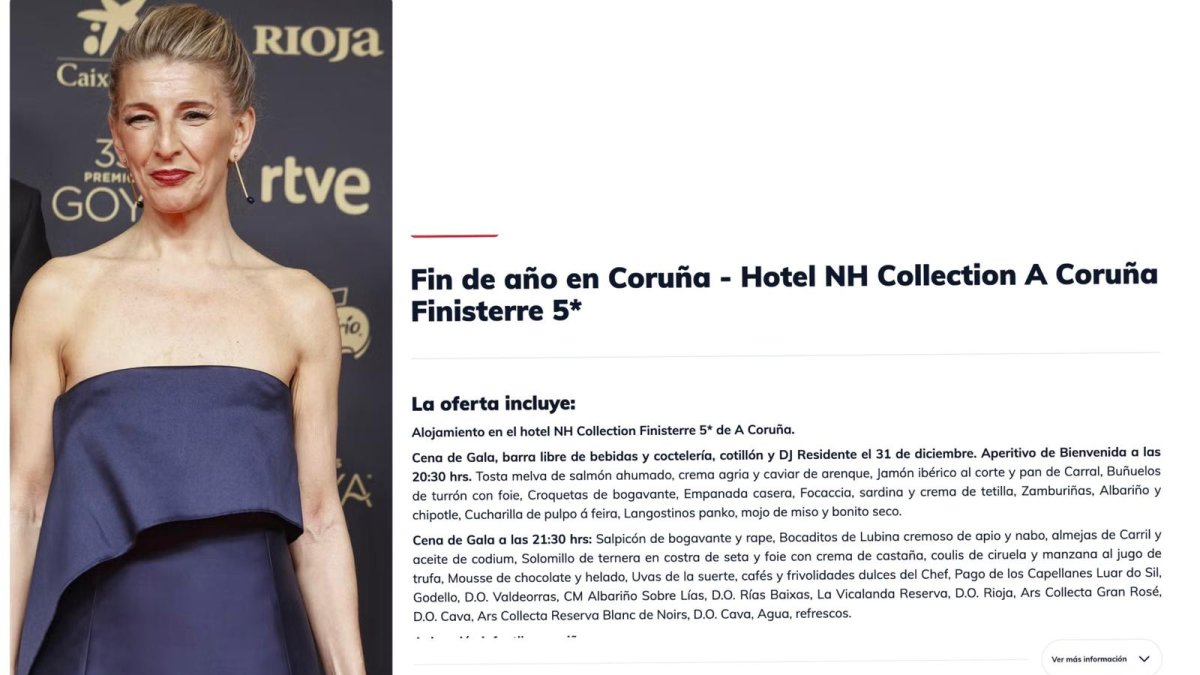 La vicepresidenta segunda del Gobierno disfrutó de un fin de año en el hotel más lujosos de A Coruña, el NH Finisterre, una celebración por todo lo alto que contrasta con lo que predica y su pasado comunista...
