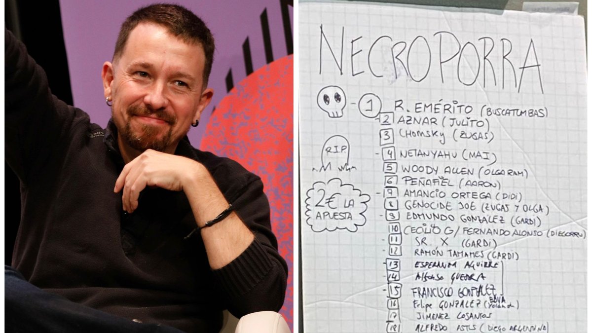 La 'necroporra' del local del fundador de Podemos se viraliza con los nombres de personas que la gente apuesta que fallecerán este año: Aznar, el Rey Emérito, Amancio Ortega, Abascal o Vito Quiles...