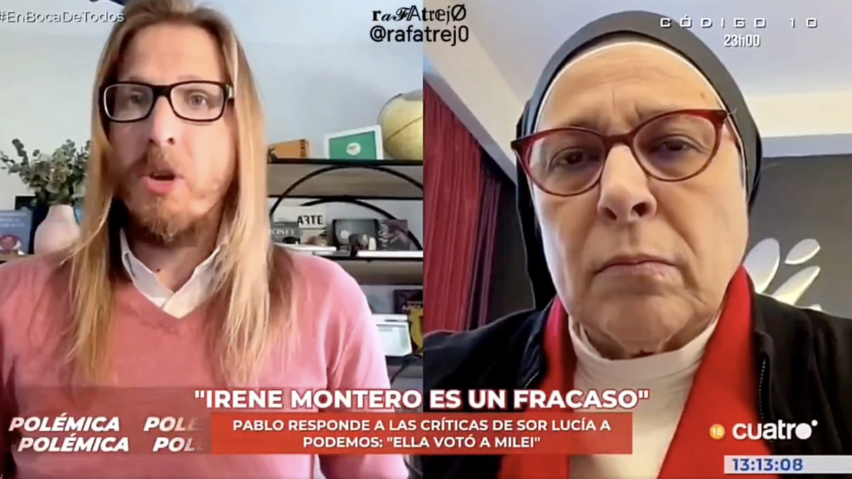 "Ya quisiera los podemitas haber tanto como ha hecho la Iglesia por la gente", estalla la famosa monja argentina tras acusarle Pablo Fernández de estar en una institución de pederastas...