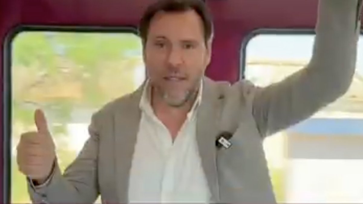 El ministro de Transportes se graba un vídeo desde un tren vendiendo las maravillas de los nuevos convoyes pero la realidad le baja los humos: "una burda manera de querer autoblanquearse por las 43 muertes por la que ni él ni nadie ha asumido ninguna responsabilidad"...