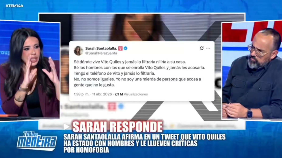 Sarah Santaolalla reafirma la orientación sexual de Vito Quiles y choca con Risto en su regreso a Cuatro