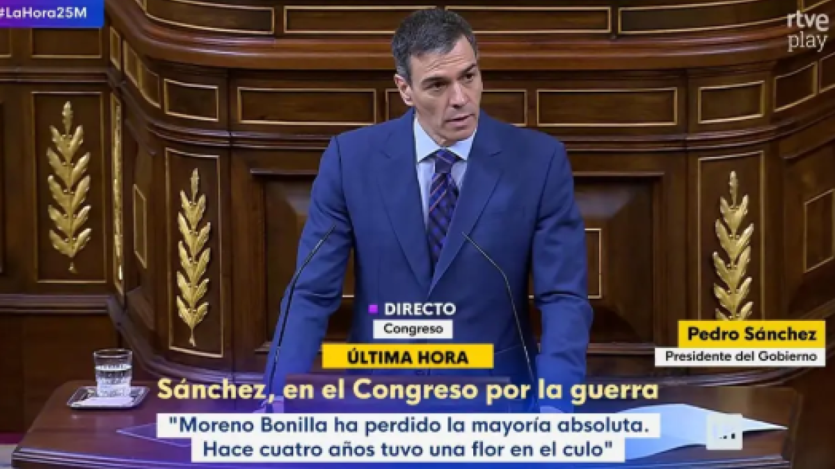 'La Hora de la 1' entrecomilla una supuesta frase de Pedro Sánchez que nada tiene que ver con lo que estaba diciendo y sí relacionado con el presidente de Andalucía y la mayoría absoluta que consiguió en las pasadas elecciones....