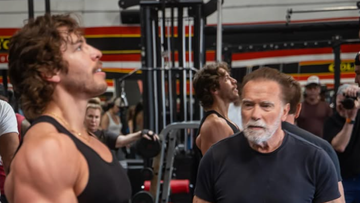 Los genes están ahí: las imágenes del entrenamiento de Joseph Baena junto a su padre Schwarzenegger