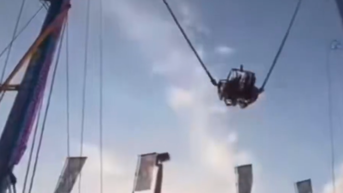 Tremendo susto en la Feria de Sevilla: se rompe una cuerda de la atracción del tirachinas con dos menores dentro