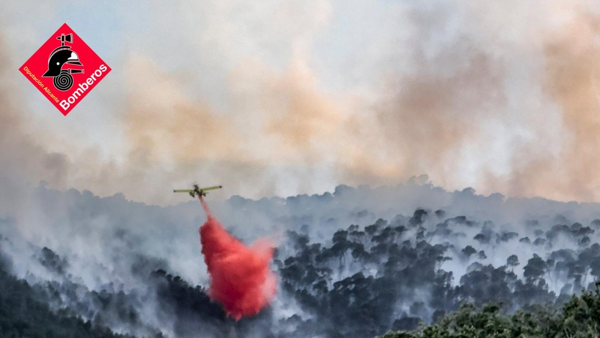 Fuego en el Maigmó: Los bomberos combaten con medios aéreos y terrestres tres focos en una zona de difícil acceso