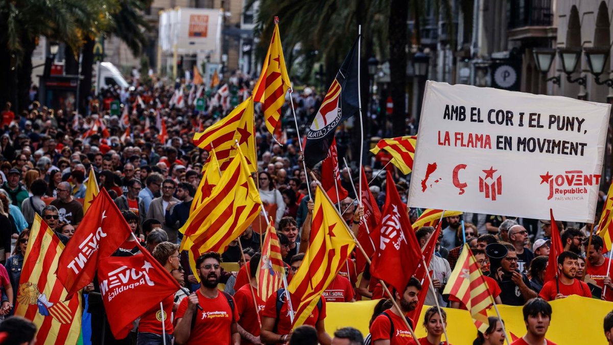 La izquierda independentista valenciana sale a la calle para criticar los gobiernos "sectarios", reivindicar la “lengua valenciana” y poner en valor los servicios públicos, como la sanidad. "Queremos un país con futuro, democrático y libre"....