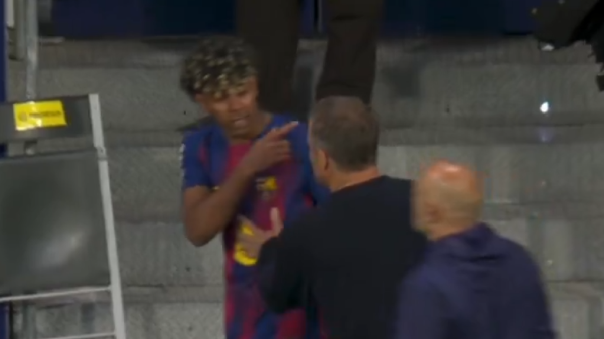 El cabreo de Lamine Yamal: no celebró el gol de Lewandowski y 'pasó' de Flick