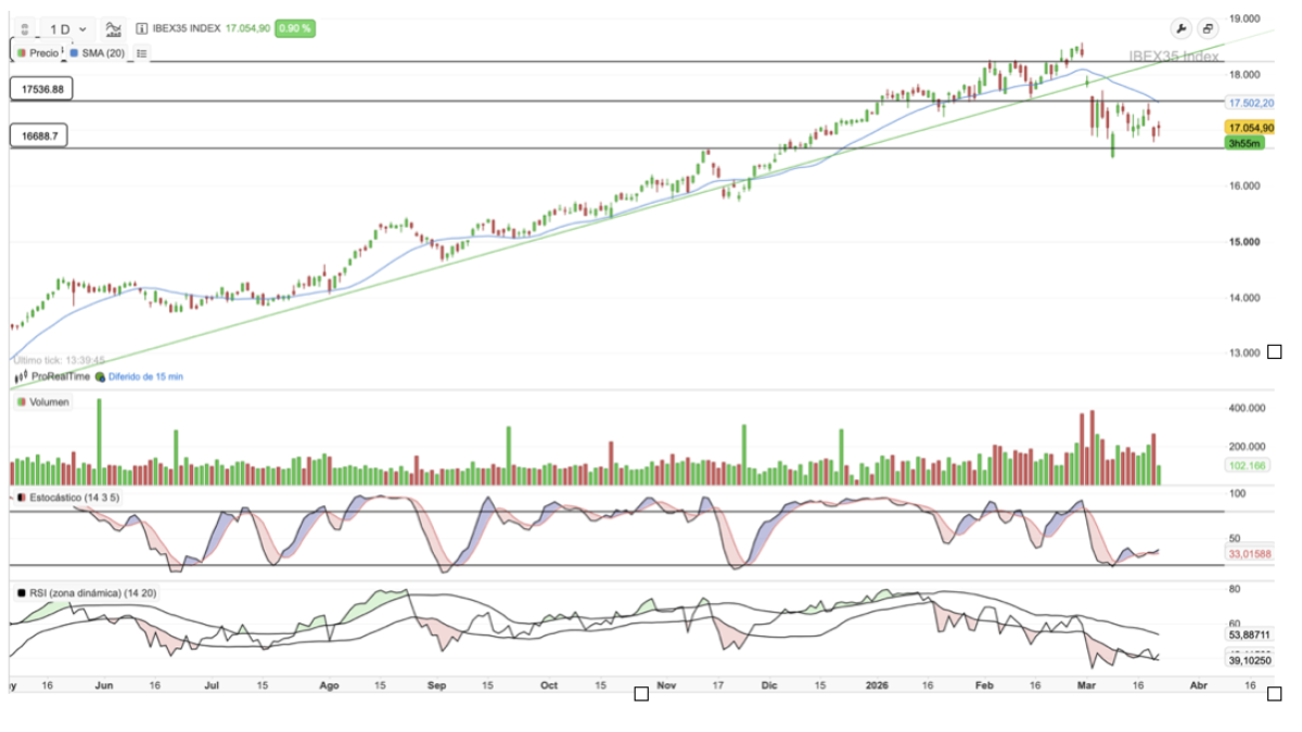 El patrón que manda en el mercado es que cada vez que el crudo afloja, el mercado intenta rebotar; cuando el Brent vuelve a tensarse, la renta variable se desinfla...