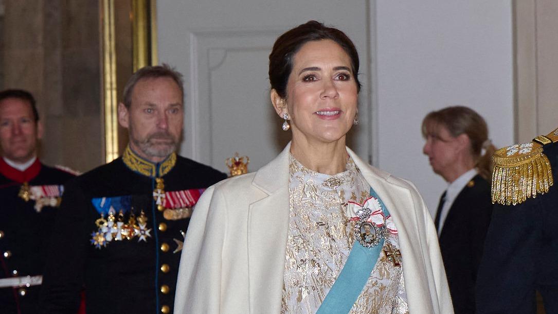 Mary de Danemark, “Reine des Neiges” dans sa robe du Groenland en brocart doré recyclée pour une réception