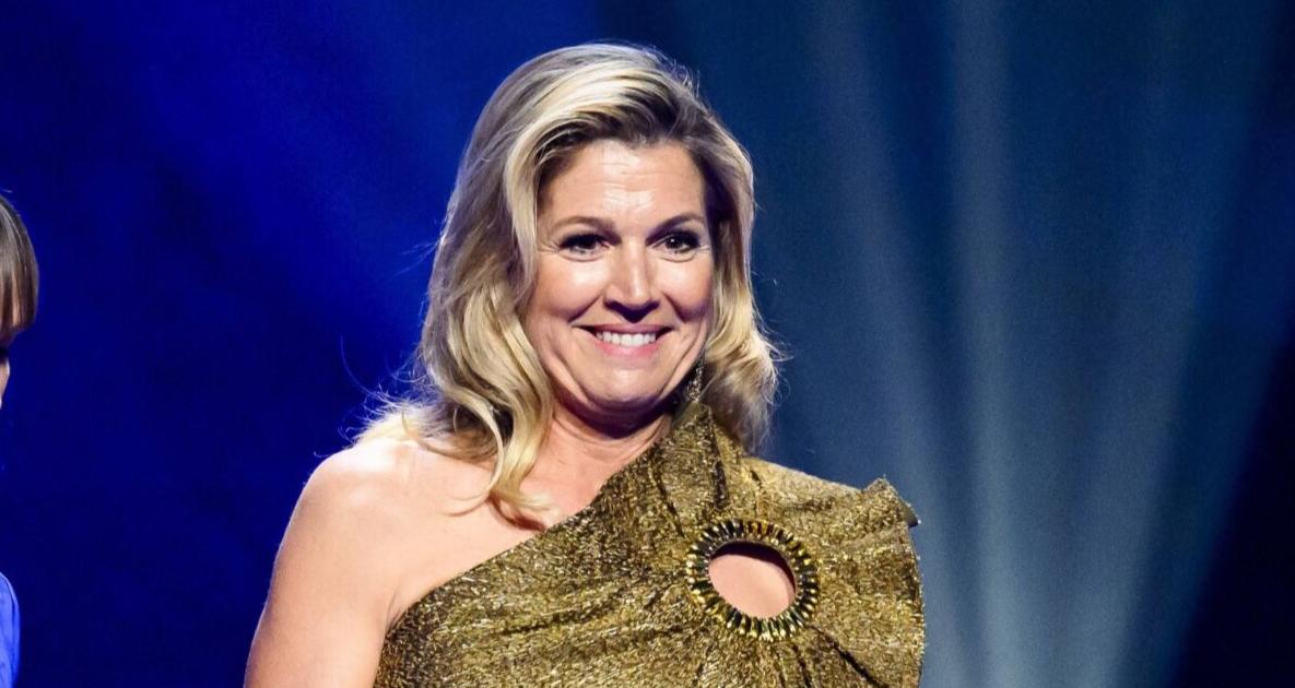 À la télévision néerlandaise, Maxima des Pays-Bas recycle son audacieux top doré asymétrique