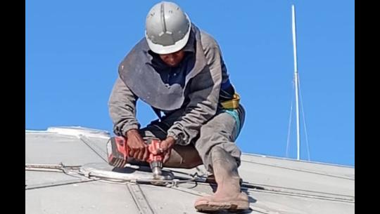 En Refinería Cienfuegos S.A. impermiabilizan el domo geodésico de uno de los tanques que devienen ícono de la ciudad y sobresalen porque poseen una capacidad de almacenamiento de 50 mil metros cúbicos de crudo...