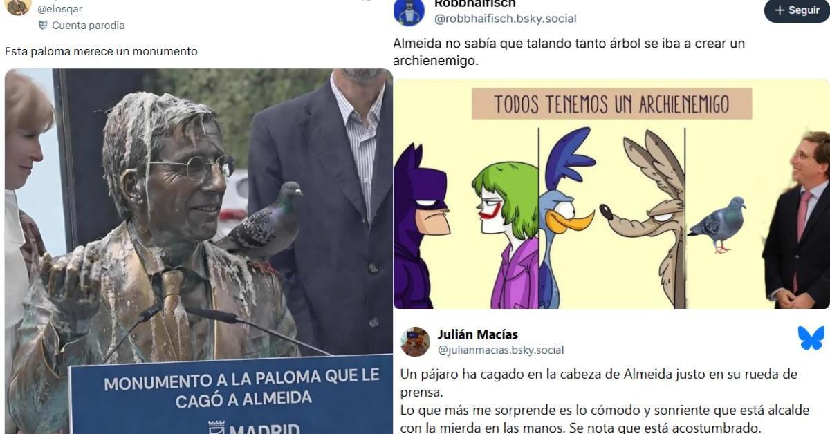 "Una paloma, símbolo de la paz, defecando encima de un pepero", las redes se ríen de la 'cagada' de Almeida