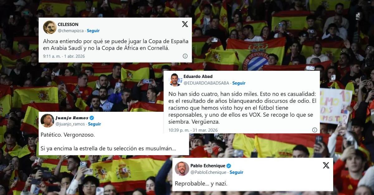 X y Bluesky se indignan tras los cánticos islamófobos durante el partido amistoso entre España y Egipto Los usuarios apuntan a la normalización de los discursos de odio: "Es la consecuencia de lo que la derecha racista y xenófoba lleva alimentando durante años" Publicamos esta información en abierto...