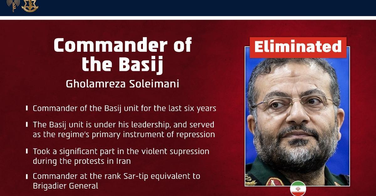 El Ejército israelí había anunciado que el comandante murió en "un ataque preciso" La milicia paramilitar Basij se encarga de la represión ciudadana y está vinculada a la Guardia Revolucionaria del país persa...