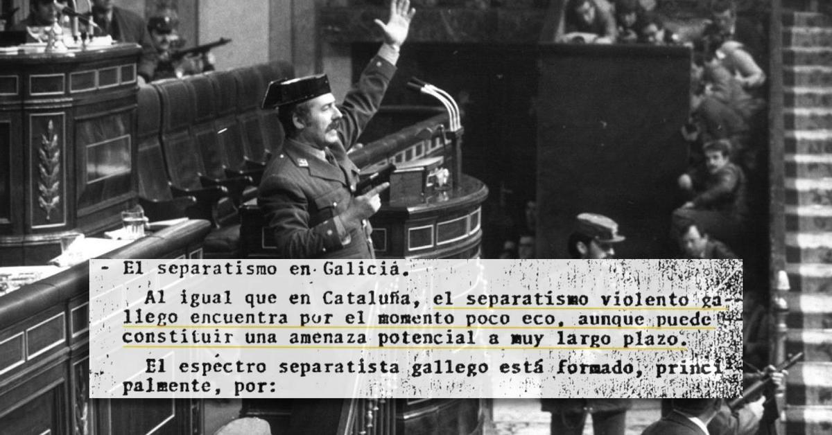 Un informe de Defensa "sobre la amenaza interior" ahora desclasificado minimizaba "el espectro separatista gallego" "A plazo medio, solo en Vascongadas y Cataluña", dice el informe, podría haber "algún tipo de intervención de las Fuerzas Armadas"...