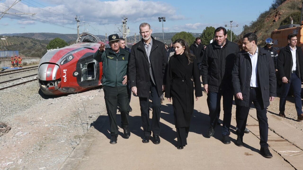 Sus Majestades comprueban a pie de vía cómo quedaron los trenes y departen con los voluntarios y efectivos de emergencias...