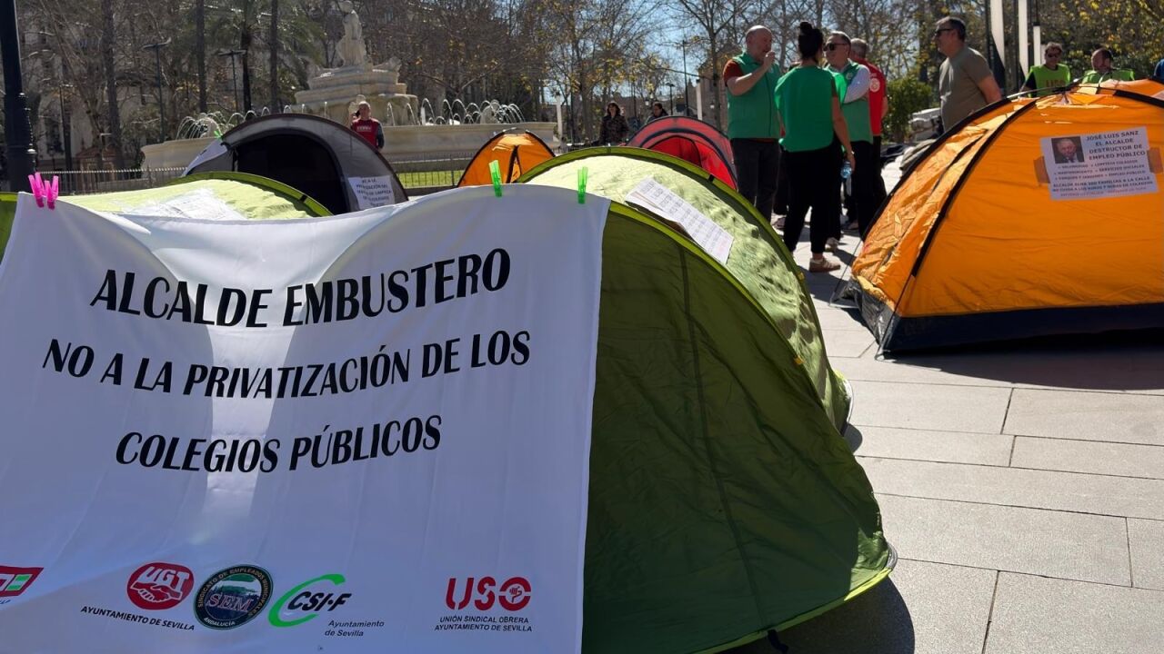 Acampada en la plaza del Ayuntamiento por la externalización de la limpieza en colegios...
