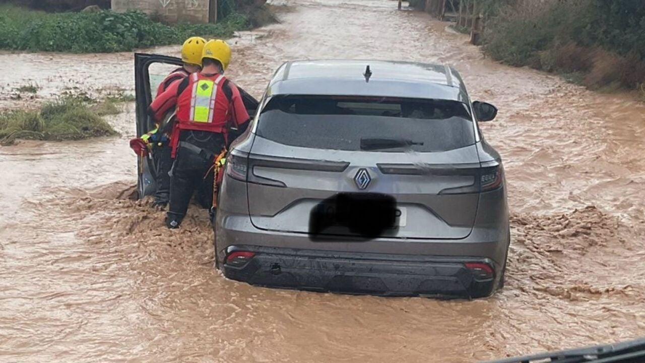 Rescatan a una persona atrapada en el interior de su vehículo por las fuertes lluvias en Almería