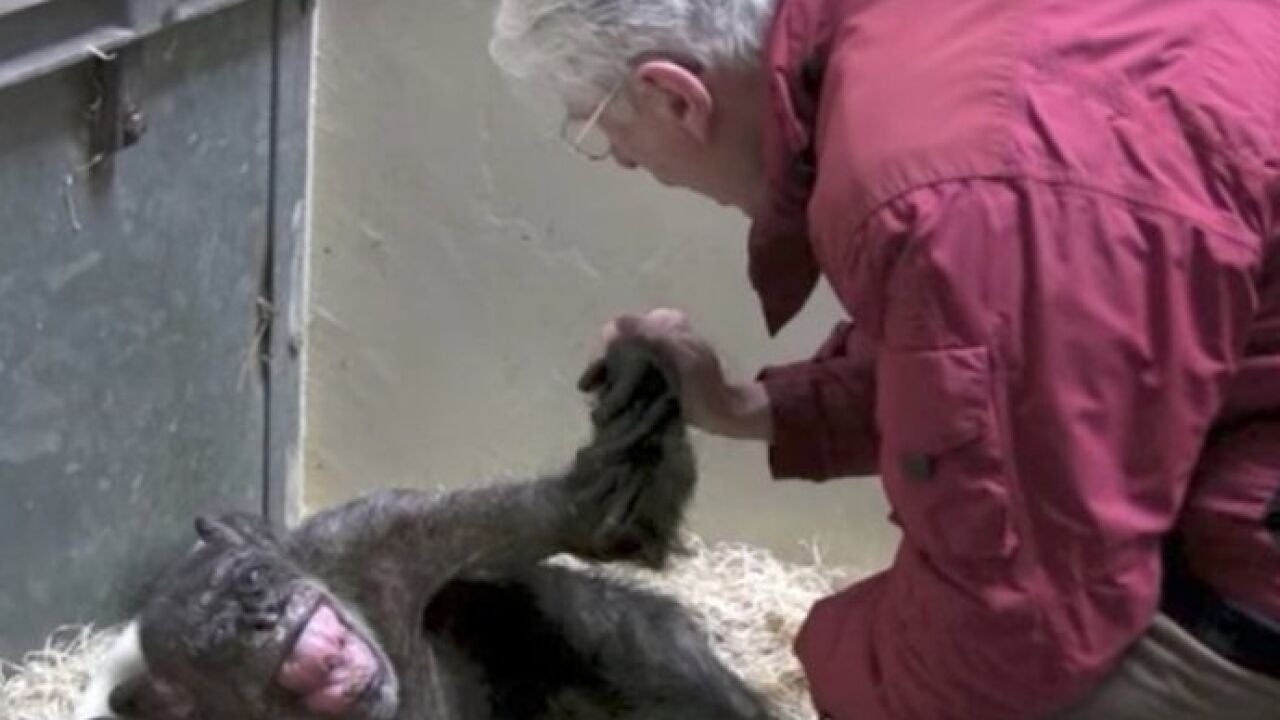 El emotivo adiós de una chimpancé anciana a su cuidador tras 40 años juntos