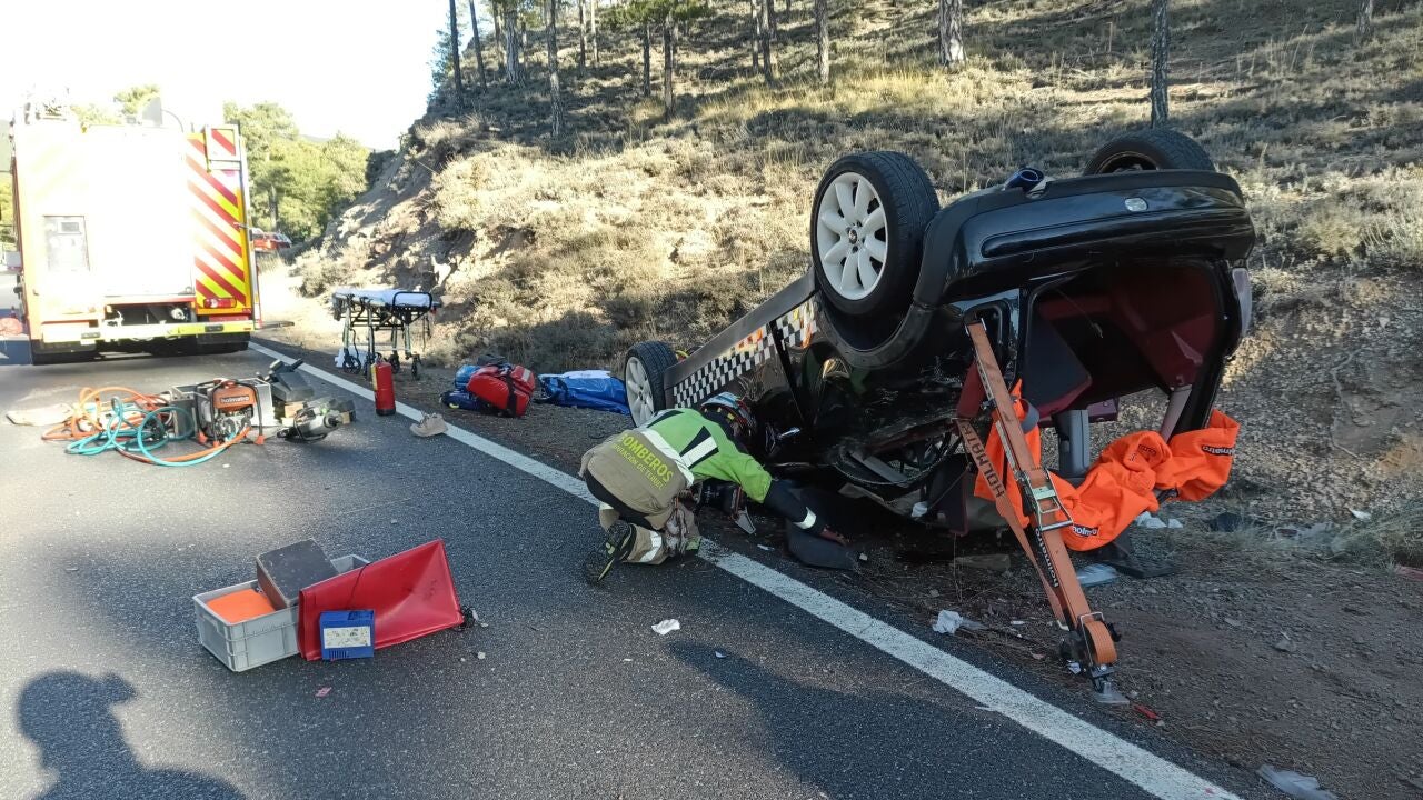 EL coche se ha salido de la carretera y ha volcado en Mora de Rubielos...