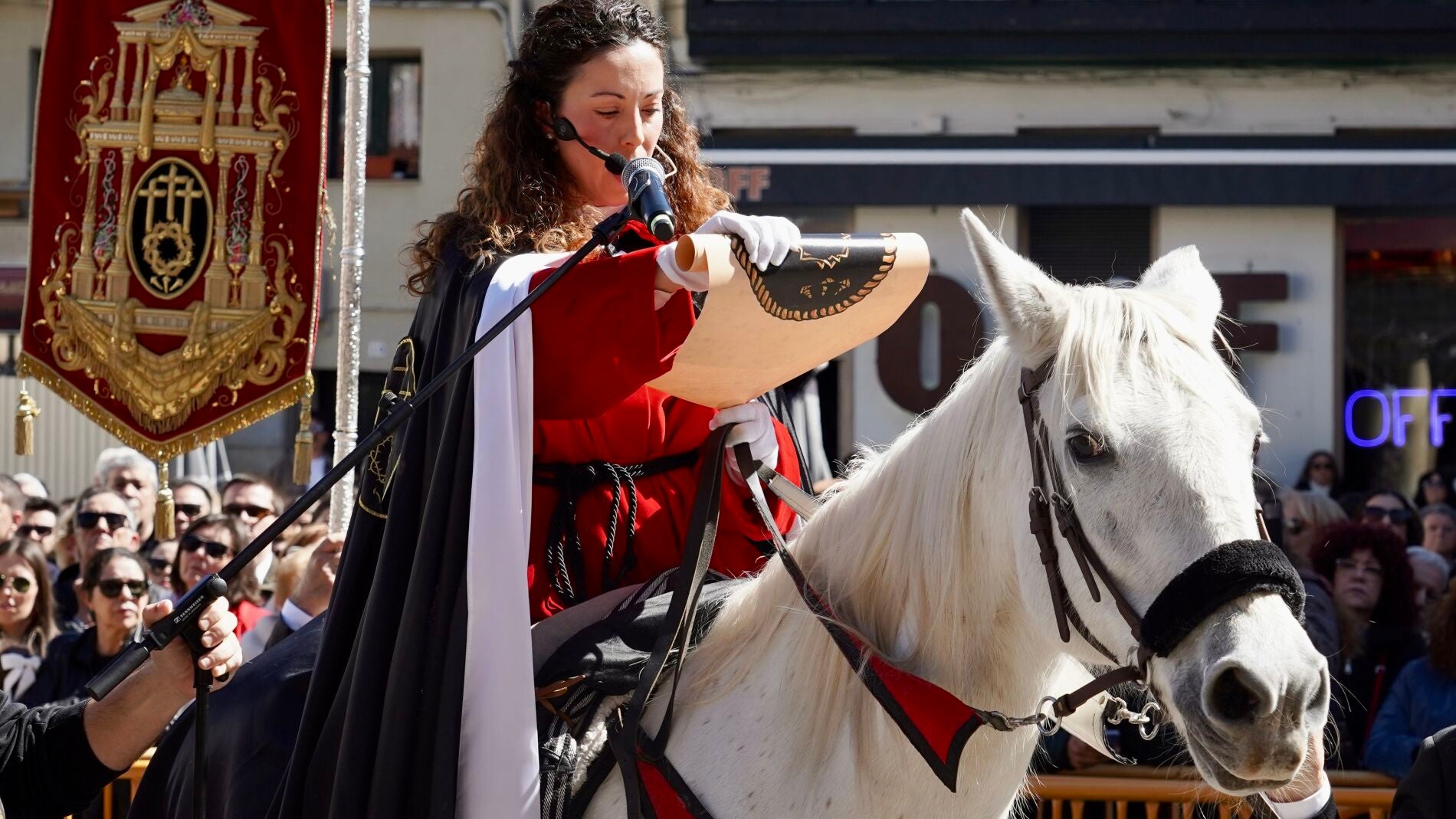 Manuel Jáñez invita a la comitiva de jinetes y banda a “anunciar, con voz de enamorado, la séptima palabra, que es la prueba, de que, al Padre, mi Señor se ha encomendado”...