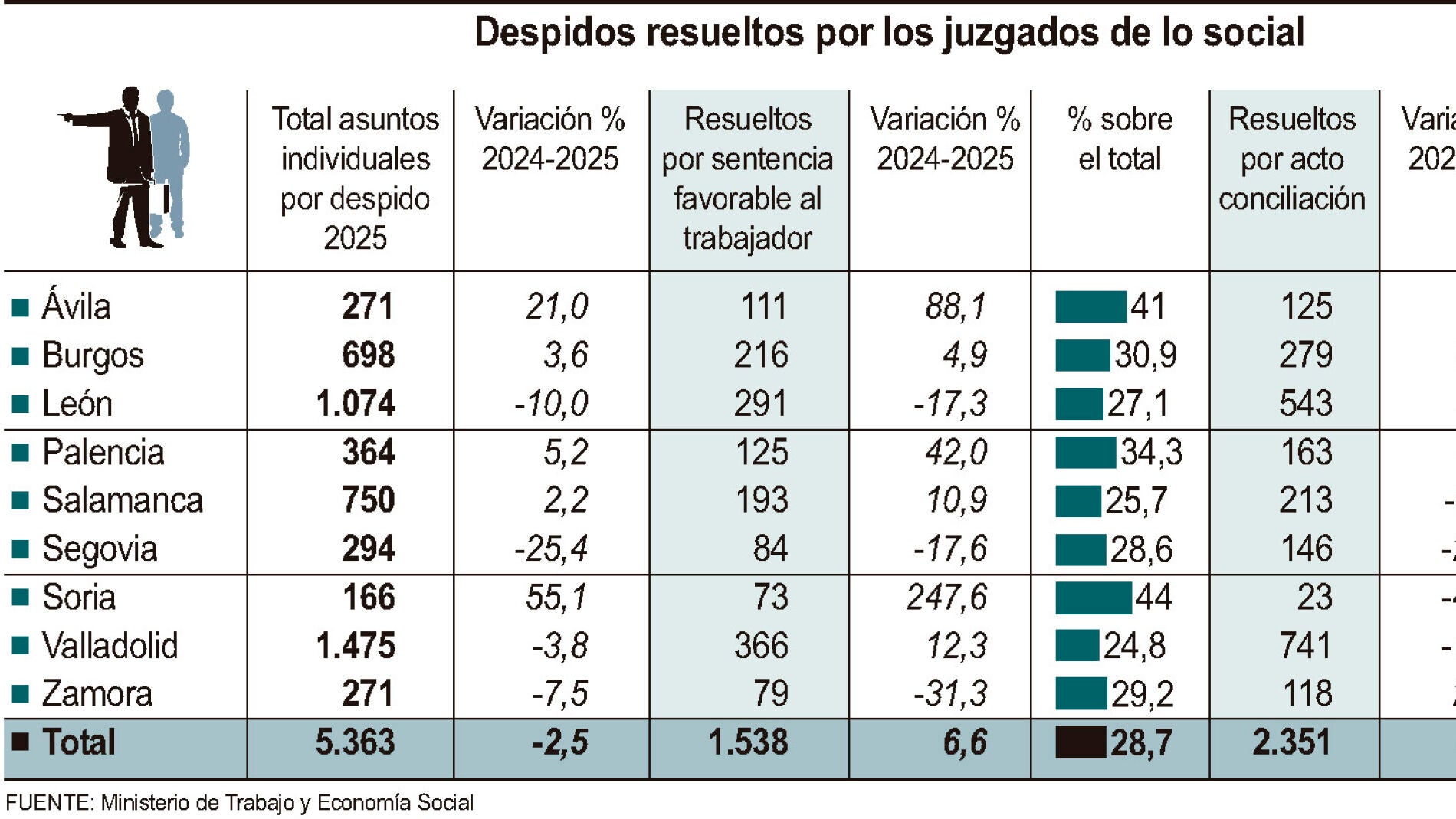 Casi tres de cada cuatro despidos que llegan a los juzgados se resuelven con sentencia favorable al trabajador o con conciliación en 2025