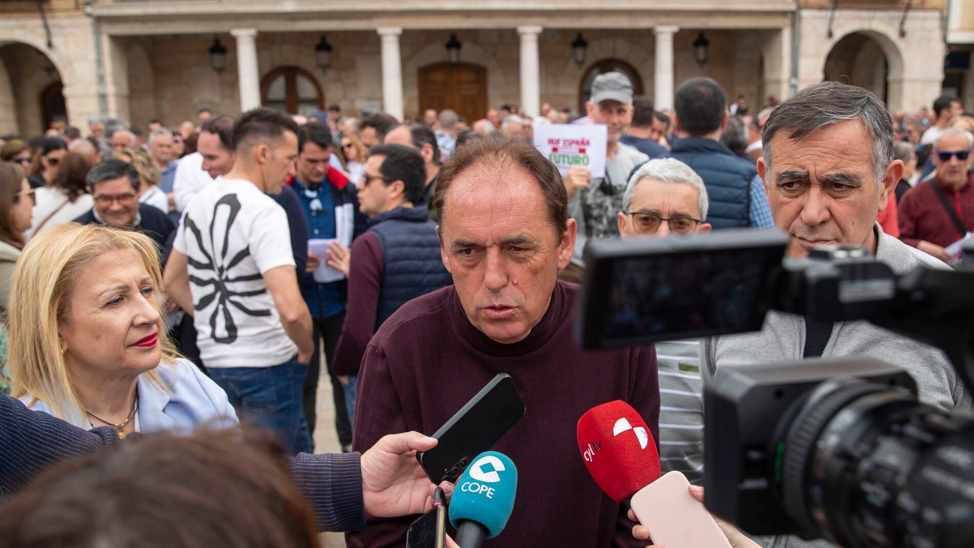 Cientos de personas protestan contra los despidos y el ERTE de la empresa Huf en El Burgo de Osma (Soria)