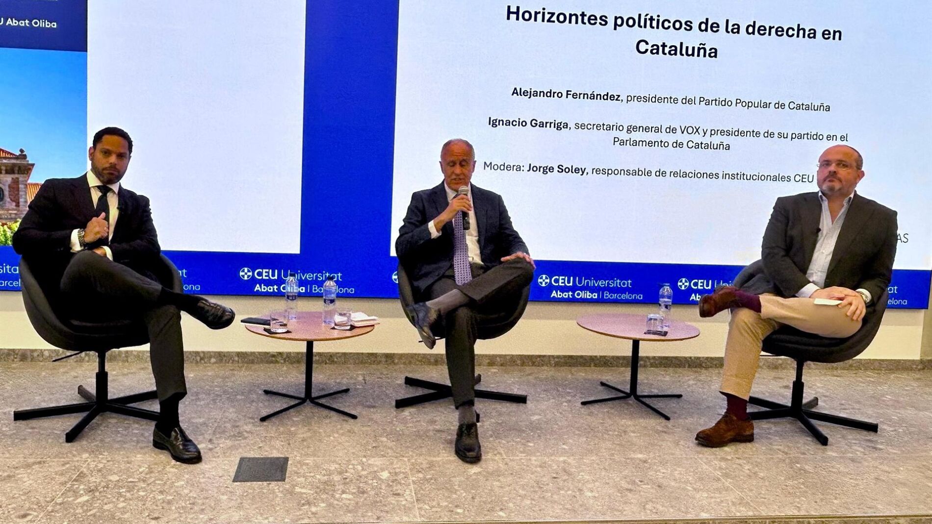 Ignacio Garriga y Alejandro Fernández coinciden en una mesa redonda en la que coinciden en calificar de "fracaso" la historia de Convergencia y Junts...