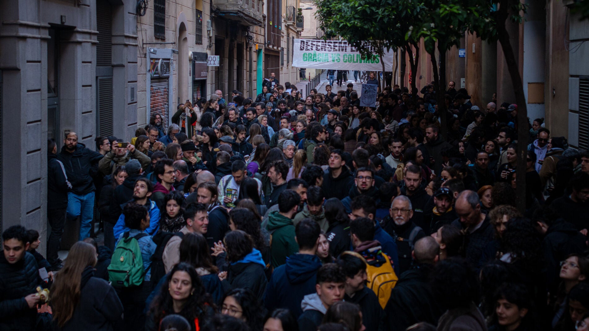 Movilización ciudadana para impedir un desahucio del bloque Sant Agustí en Gràcia, Barcelona