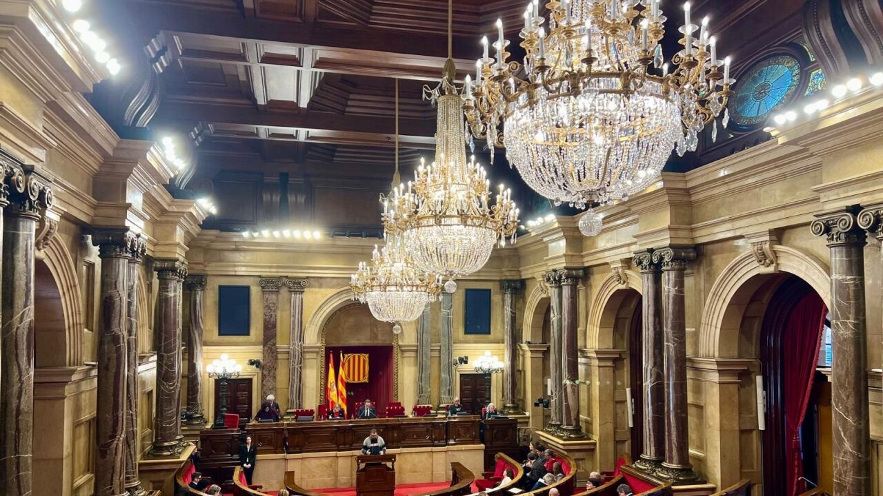 Suspenden el pleno del Parlament tras caer unas piezas de una lámpara del hemiciclo